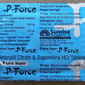 對於許多男人,勃起功能障礙、早洩攜起手來。這可能會導致很多困難,更不要說有不便採取兩種不同的藥片每壹天。因此,研究人員想出了完美的解抉方案必利吉P-force:Extra Super P-Force(西地那非100mg+達泊西汀100mg)。